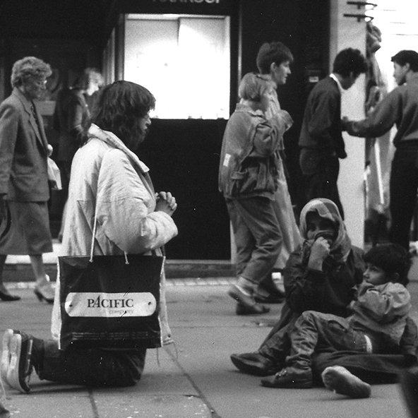 REPORTAGE - Images à l'appui... entre autres, rue Neuve (Bruxelles, Centre-ville) des enfants endormis des heures durant dans les bras de leur marâtre impossible sans somnifères. Outre servir d'appât pour les dons en espèces - "hier comme aujourd’hui" - ces enfants sont des proies faciles pour les pédophiles "d'ici et d’ailleurs". Mon reportage à eu lieu entre 1986 et 1990.