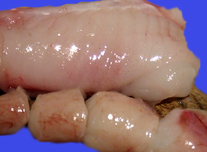 Cuisson : Faites bouillir environ 2 litres et demi d’eau non salée dans laquelle vous faites cuire les 2 têtes de congre que vous aurez salé auparavant avec du gros sel de Guérande. Salez les têtes à l’intérieur. Ajoutez également 2 gros oignons épluchés. Couvrez la casserole et laissez cuire à feu moyen durant environ 30 minutes. Prévoyez une grande casserole de manière à ce que les têtes de congre soient toujours couvertes d’eau durant la cuisson. Après cuisson, passez le jus de cuisson au chinois de façon à obtenir un court-bouillon net, sans impuretés. Les oignons sont à jeter. Avec une fourchette et beaucoup de patience, récupérez un maximum de chair blanche des têtes que vous ajouterez ensuite au court-bouillon. Mixez légèrement.