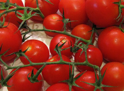 Accompagnement : 200 gr de pommes de terre rouges de petite taille, 1 poivron vert, 1 rouge, 1 jaune, 4 grosses tomates (maturité à point), 100 gr d’échalotes, ail frais rose, 1 bouquet de coriandre, fleur de sel de Guérande, pili-pili en pâte.