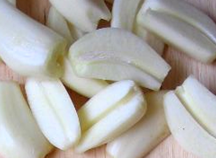 Après épluchage, coupez les pommes de terre en rondelles, les échalotes en fines lamelles, l’ail coupé fin. En attendant, placez les pommes de terre dans un bol recouvertes d’eau.