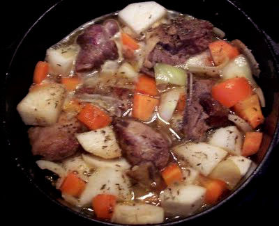 Civet de biche, potiron, pommes de terre, champignons...