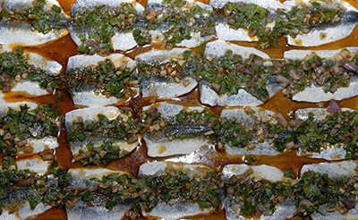 Entrée : filets de sardine frits au four