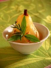 Poire au four sur lit d'Amareto, café